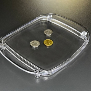 Некоторые кассовые тарелки могут иметь большую полость, куда помещается не только рекламный вкладыш, а и небольшая продукция. Поэтому при выборе подставки под деньги следует учесть задачи, которые она должна будет решать. Купить монетницу необычного дизайна, интересной расцветки или формы тоже можно в KLV-Cennik, мы воплотим все желания клиента, чтобы заказанная им продукция помогла достичь большего успеха в торговле. Изготовление монетницы из такого материала, как оргстекло, делает их ударопрочными и привлекательными внешне.